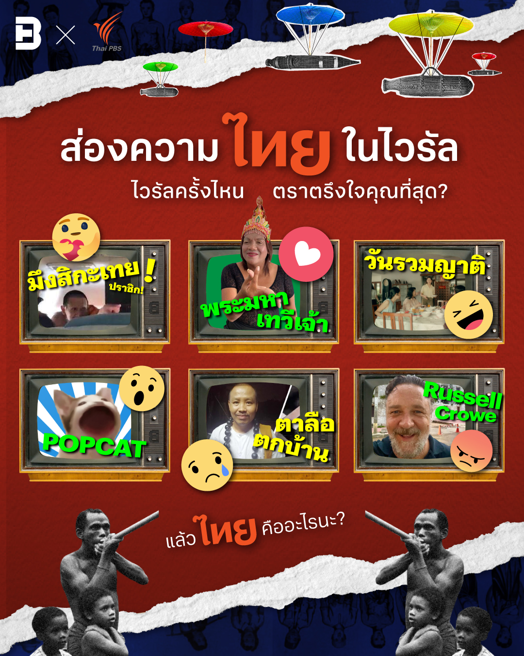 แม้แต่ในวัฒนธรรมความป๊อปแบบร่วมสมัยก็อาจเห็นร่องรอยความเป็นไทยในมิติเชิงสังคม เราจึงชวนส่องไวรัลโด่งดังในช่วงที่ผ่านมา ที่อาจสะท้อนภาพความเป็นไทยในหลายมิติและชวนขบคิดว่า ไวรัลไหน #โคตรไทย ที่สุดสำหรับคุณ?